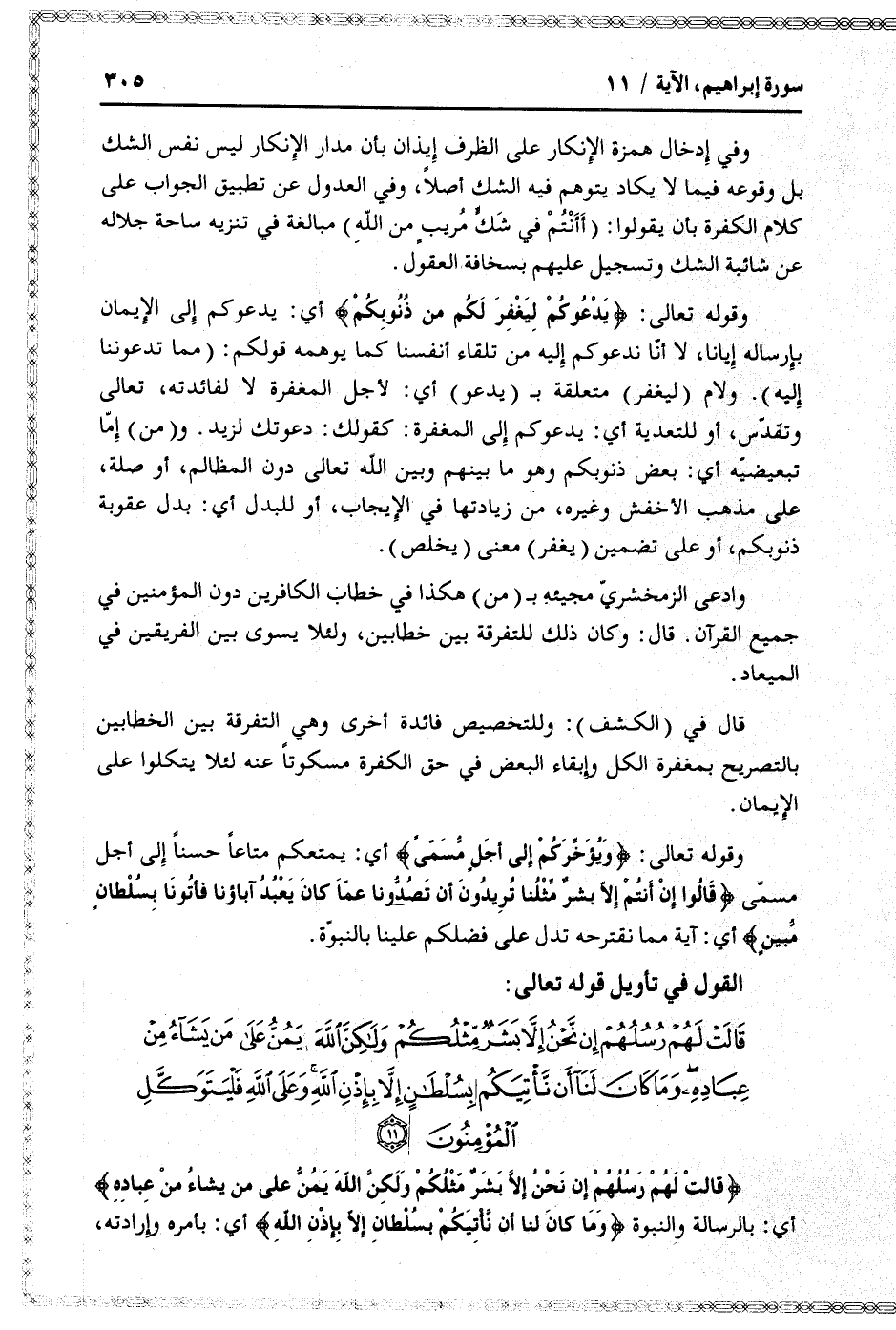 وقوله تعالى: وَيُؤَخِّرَكُمْ إِلى أَجَلٍ مُسَمًّى أي: يمتعكم متاعا حسنا إلى أجل مسمّى قالُوا إِنْ أَنْتُمْ إِلَّا بَشَرٌ مِثْلُنا تُرِيدُونَ أَنْ تَصُدُّونا عَمَّا كانَ يَعْبُدُ آباؤُنا فَأْتُونا بِسُلْطانٍ مُبِينٍ أي: آية مما نقترحه تدل على فضلكم علينا بالنبوّة.