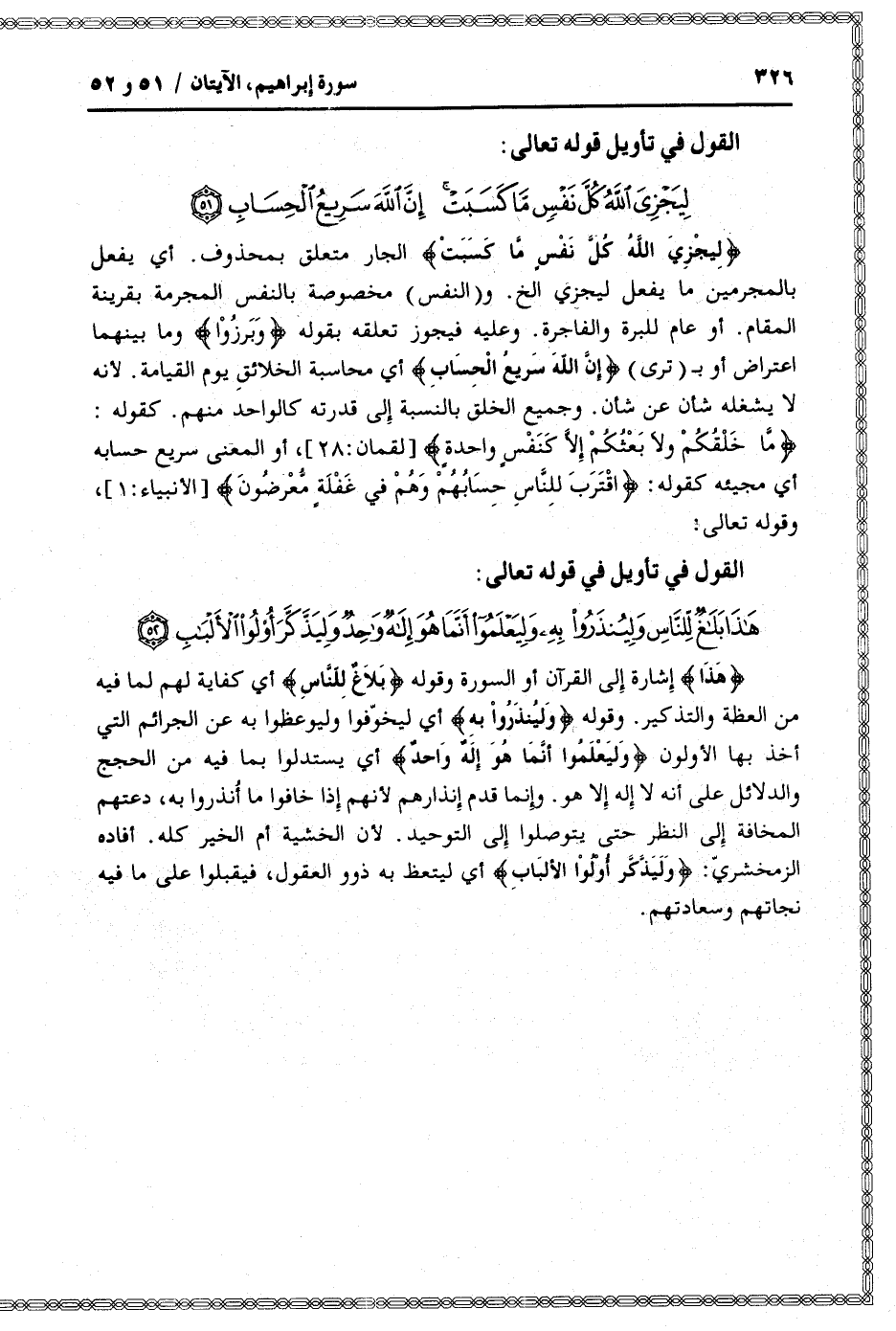 القول في تأويل قوله تعالى: [سورة إبراهيم (14) : آية 52]