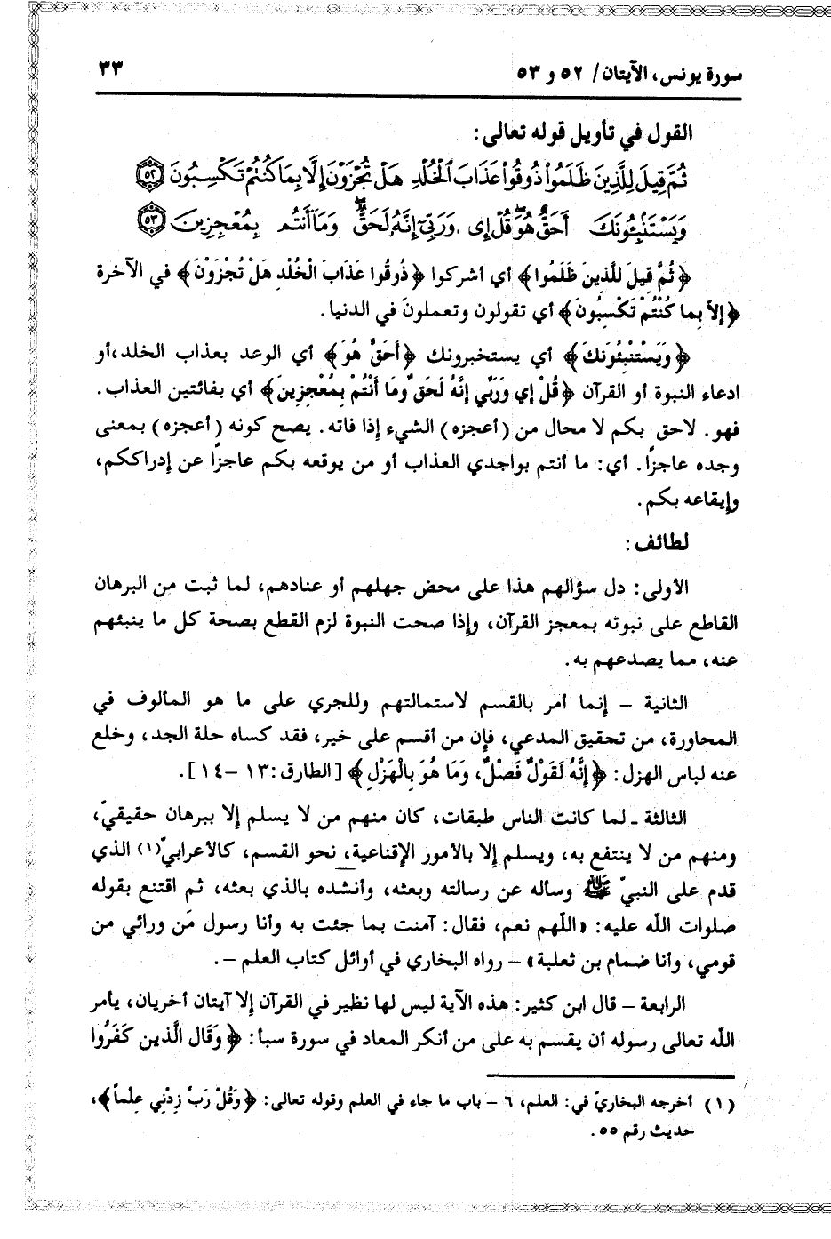 ثُمَّ قِيلَ لِلَّذِينَ ظَلَمُوا ذُوقُوا عَذابَ الْخُلْدِ هَلْ تُجْزَوْنَ إِلاَّ بِما كُنْتُمْ تَكْسِبُونَ (52) وَيَسْتَنْبِئُونَكَ أَحَقٌّ هُوَ قُلْ إِي وَرَبِّي إِنَّهُ لَحَقٌّ وَما أَنْتُمْ بِمُعْجِزِينَ (53)