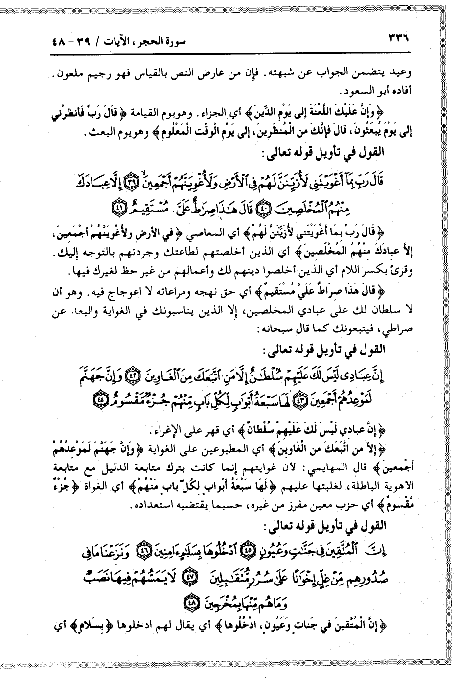 قالَ رَبِّ بِما أَغْوَيْتَنِي لَأُزَيِّنَنَّ لَهُمْ فِي الْأَرْضِ وَلَأُغْوِيَنَّهُمْ أَجْمَعِينَ (39) إِلاَّ عِبادَكَ مِنْهُمُ الْمُخْلَصِينَ (40) قالَ هذا صِراطٌ عَلَيَّ مُسْتَقِيمٌ (41)