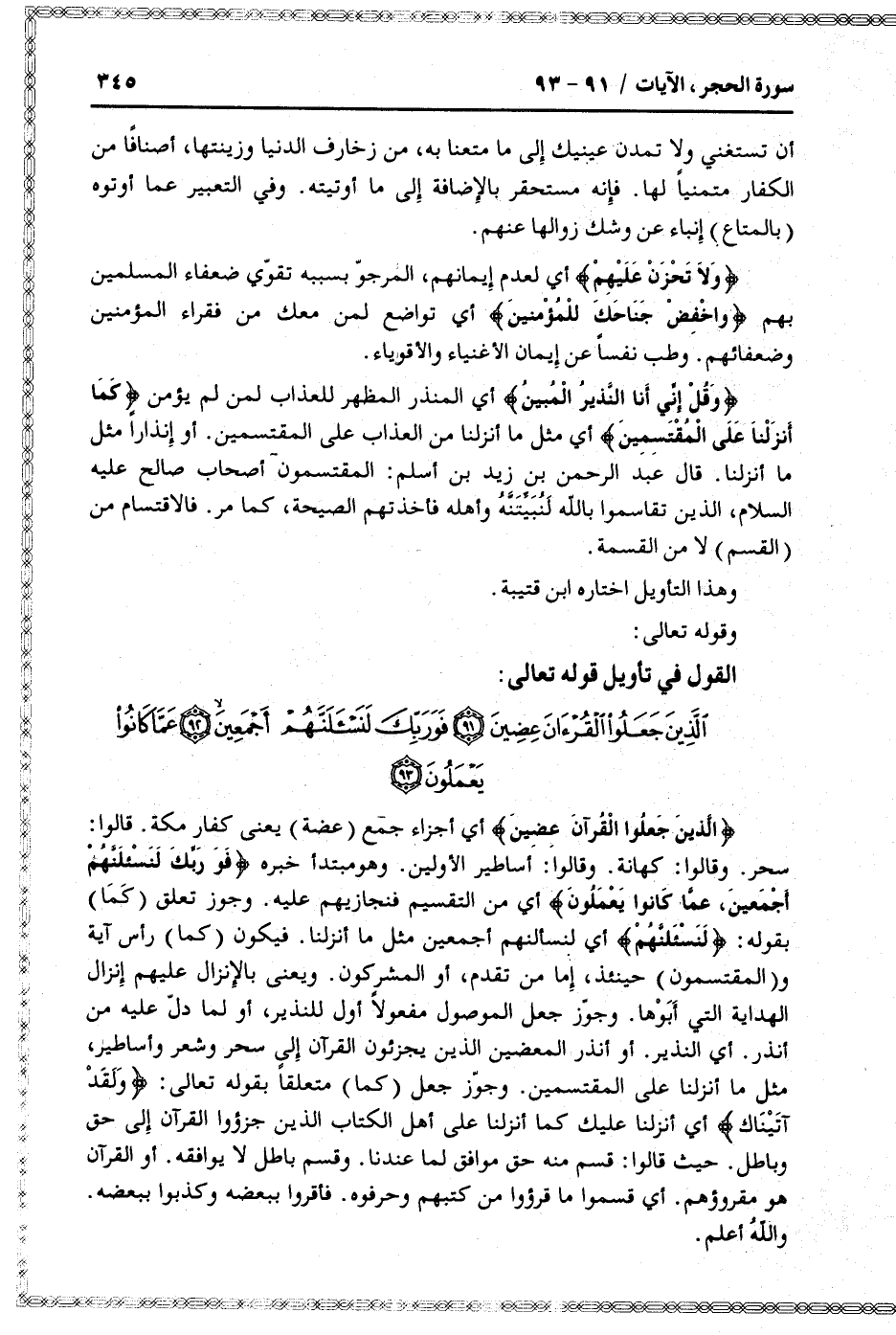 الَّذِينَ جَعَلُوا الْقُرْآنَ عِضِينَ (91) فَوَ رَبِّكَ لَنَسْئَلَنَّهُمْ أَجْمَعِينَ (92) عَمَّا كانُوا يَعْمَلُونَ (93)