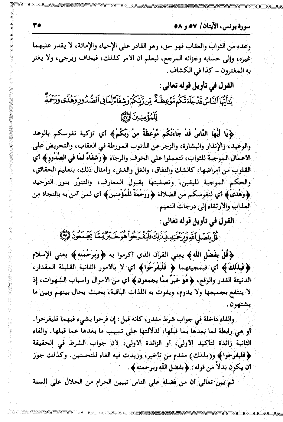 يا أَيُّهَا النَّاسُ قَدْ جاءَتْكُمْ مَوْعِظَةٌ مِنْ رَبِّكُمْ وَشِفاءٌ لِما فِي الصُّدُورِ وَهُدىً وَرَحْمَةٌ لِلْمُؤْمِنِينَ (57)