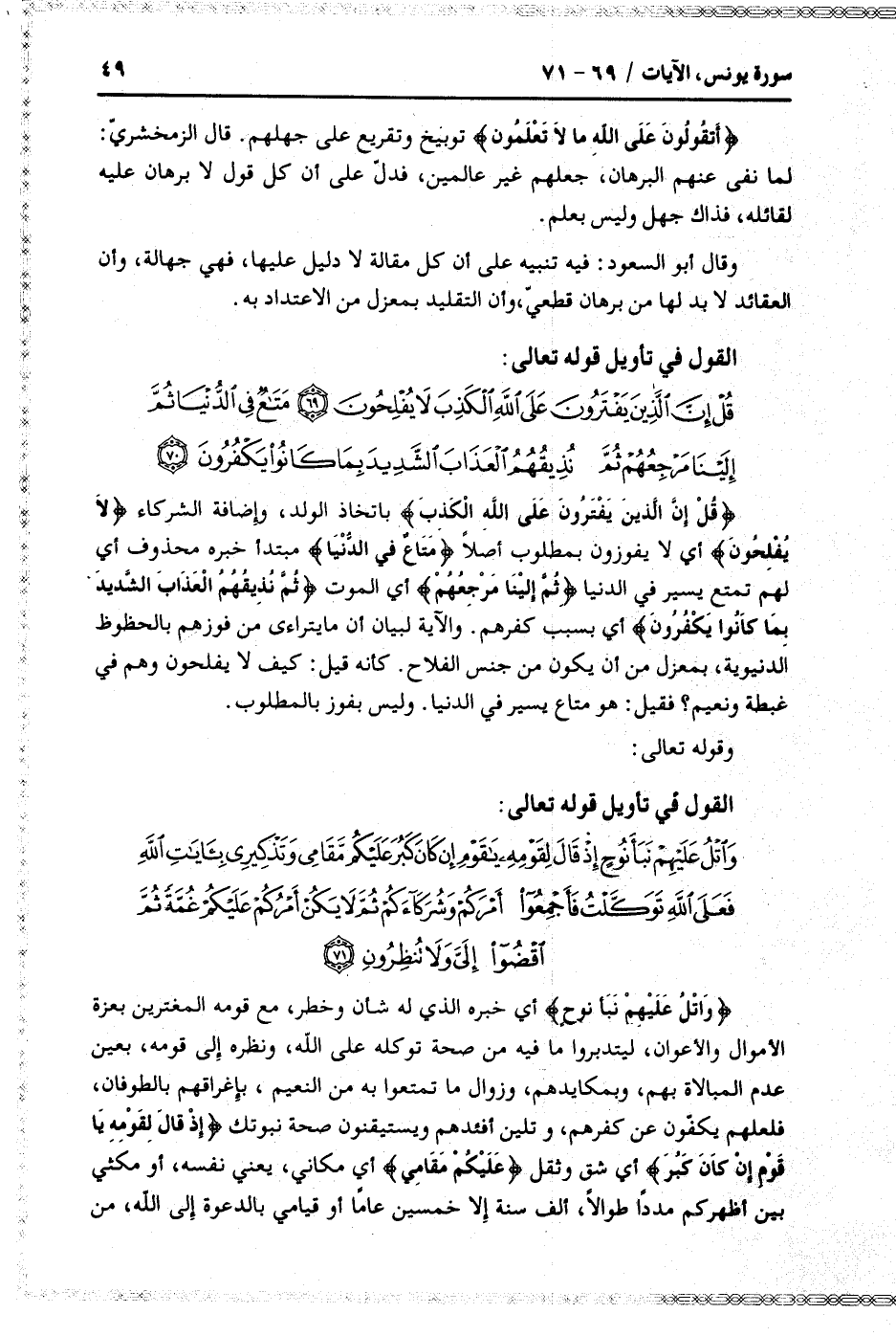 القول في تأويل قوله تعالى: [سورة يونس (10) : آية 71]