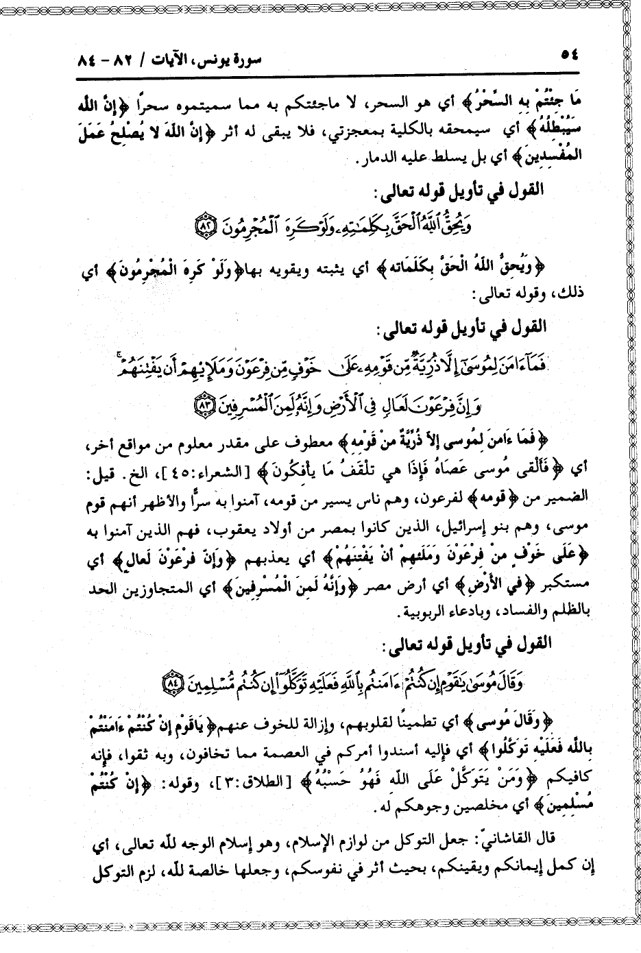 القول في تأويل قوله تعالى: [سورة يونس (10) : آية 84]