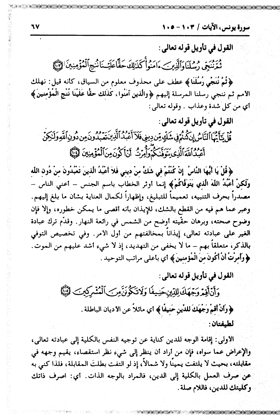 القول في تأويل قوله تعالى: [سورة يونس (10) : آية 105]