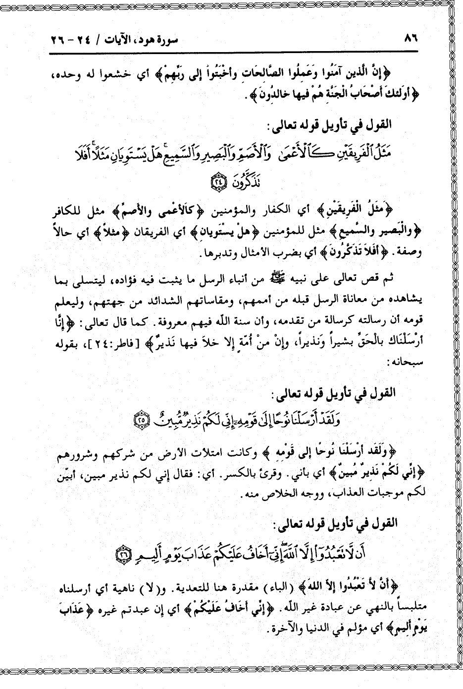 أَنْ لا تَعْبُدُوا إِلاَّ اللَّهَ إِنِّي أَخافُ عَلَيْكُمْ عَذابَ يَوْمٍ أَلِيمٍ (26)