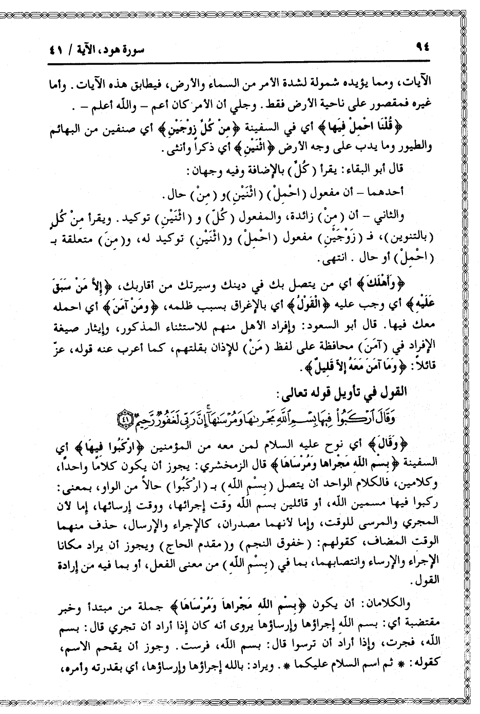 القول في تأويل قوله تعالى: [سورة هود (11) : آية 41]