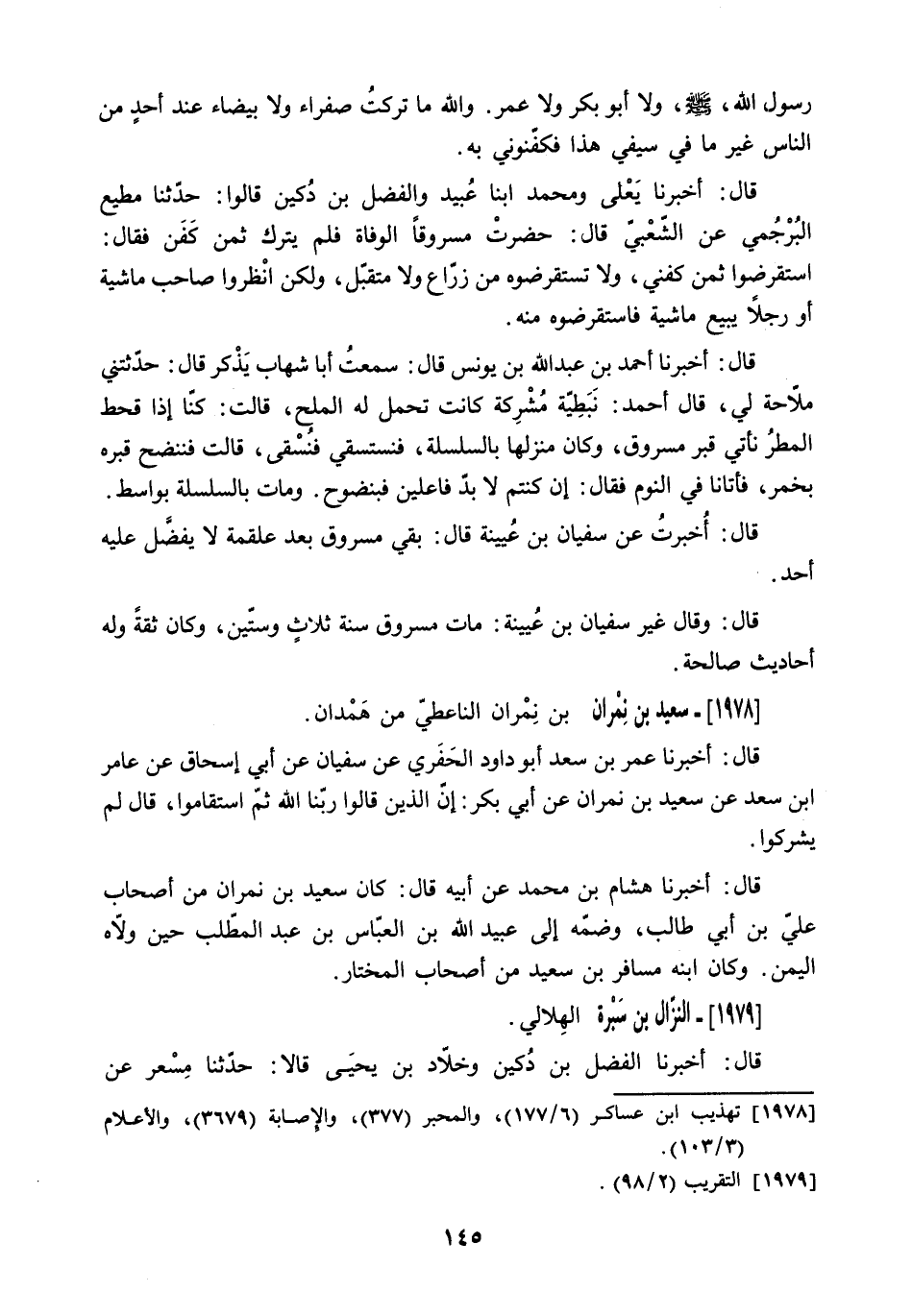 قَالَ: وَقَالَ غَيْرُ سُفْيَانَ بْنِ عُيَيْنَةَ: مَاتَ مَسْرُوقٌ سَنَةَ ثَلاثٍ وَسِتِّينَ. وَكَانَ ثِقَةً وَلَهُ أَحَادِيثُ صَالِحَةٌ.
