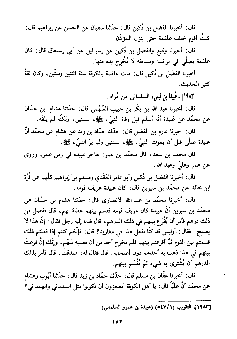 1983 التقريب (1/ 547) (عبيدة بن عمرو السلماني) .