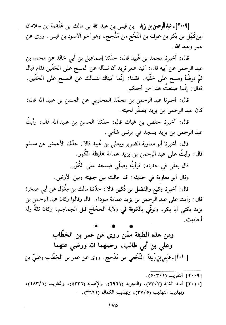 وَمِنْ هَذِهِ الطَّبَقَةِ مِمَّنْ رَوَى عَنْ عُمَرَ بْنِ الْخَطَّابِ وَعَلِيِّ بْنِ أَبِي طالب. رحمهما الله ورضي عنهما