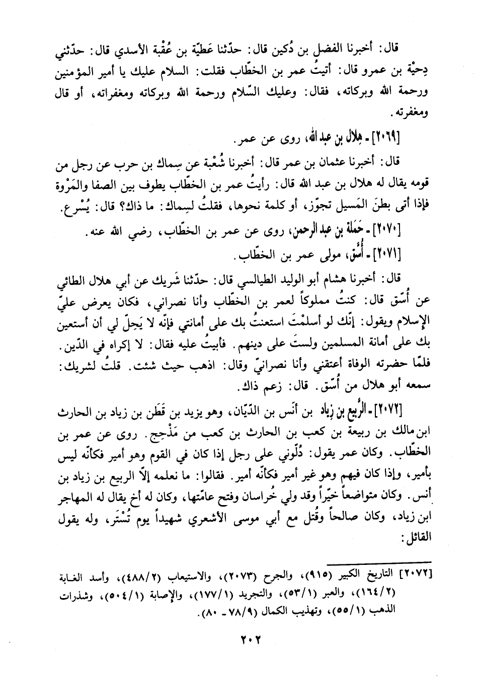 2072 التاريخ الكبير (915) ، والجرح (2073) ، والاستيعاب (2/ 488) ، وأسد الغابة (2/ 164) ، والعبر (1/ 53) ، والتجريد (1/ 177) ، والإصابة (1/ 504) ، وشذرات الذهب (1/ 55) ، وتهذيب الكمال (9/ 87- 80) .