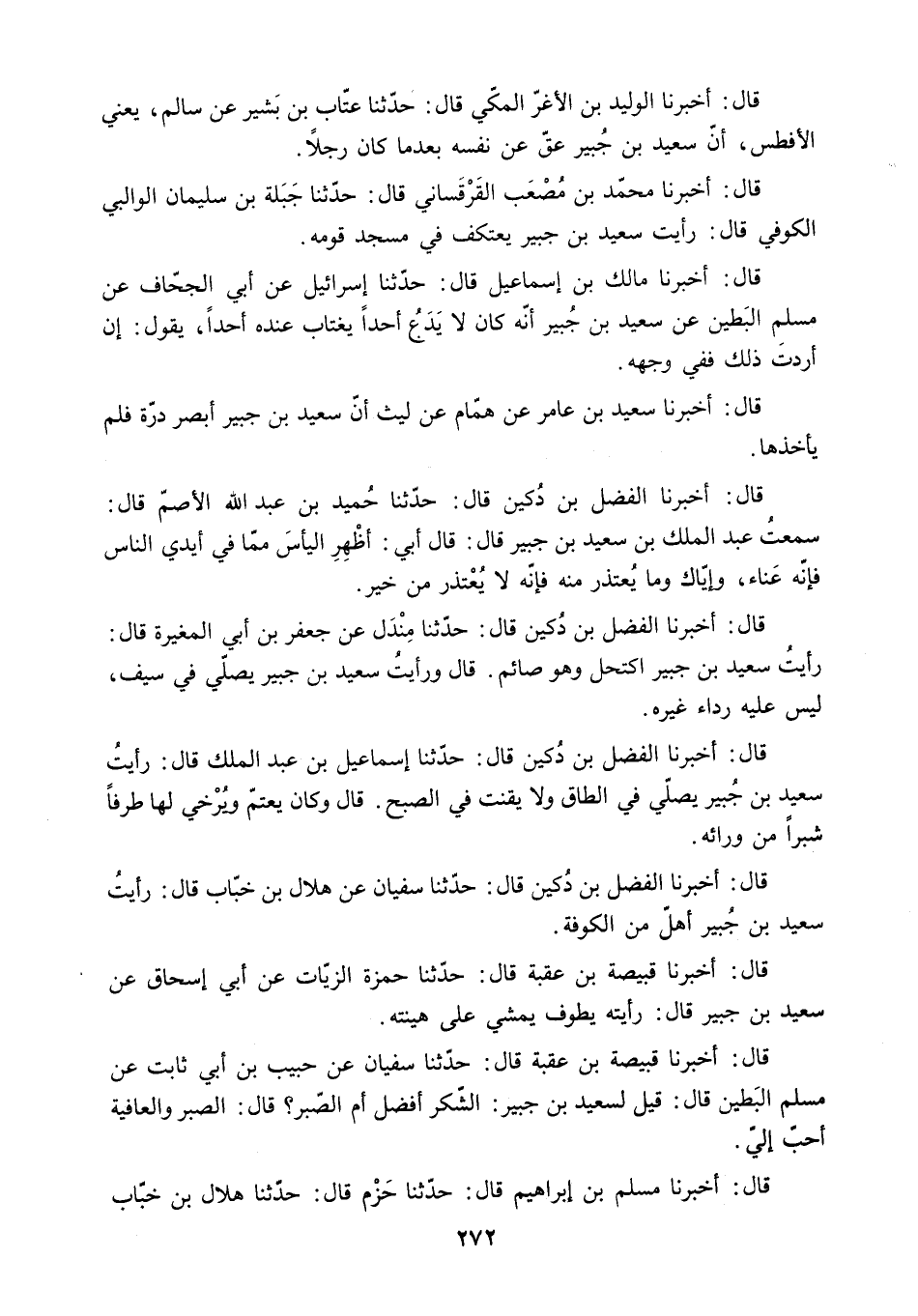 قَالَ: أَخْبَرَنَا الْفَضْلُ بْنُ دُكَيْنٍ قَالَ: حَدَّثَنَا سُفْيَانُ عَنْ هِلالِ بْنِ خَبَّابٍ قَالَ: رَأَيْتُ سعيد بن جبير أهل من الكوفة.
