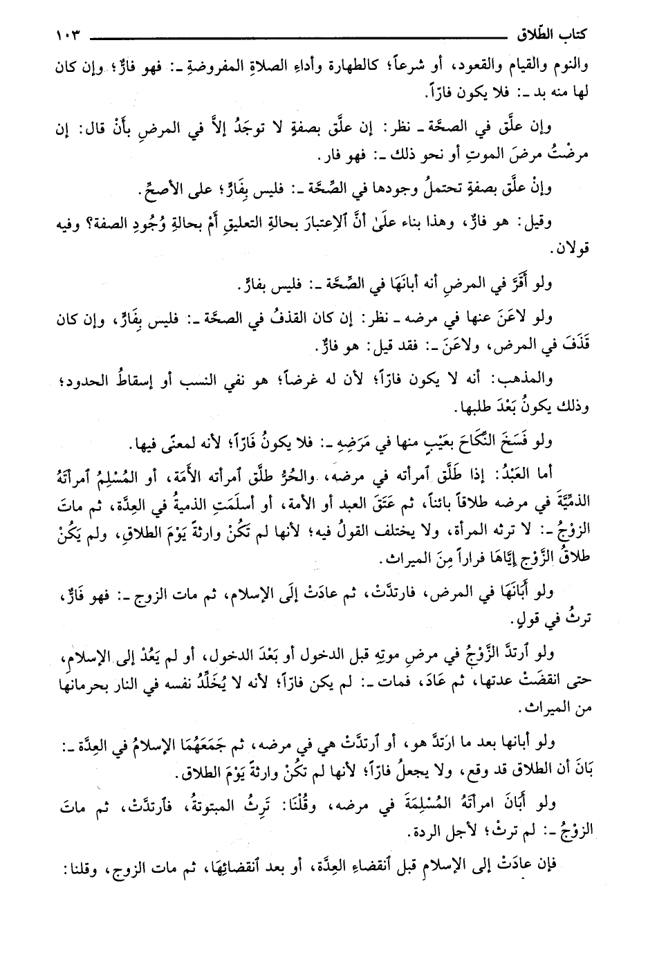 أما العبد: إذا طلق امرأته في مرضه، والحر طلق امرأته الأمة، أو المسلم امرأته الذمية في مرضه طلاقاً بائناً، ثم عتق العبد أو الأمة، أو أسلمت الذمية في العدة، ثم مات الزوج-: لا ترثه المرأة، ولا يختلف القول فيه؛ لأنها لم تكن وارثة يوم الطلاق، ولم يكن طلاق الزوج إياها فراراً من الميراث.