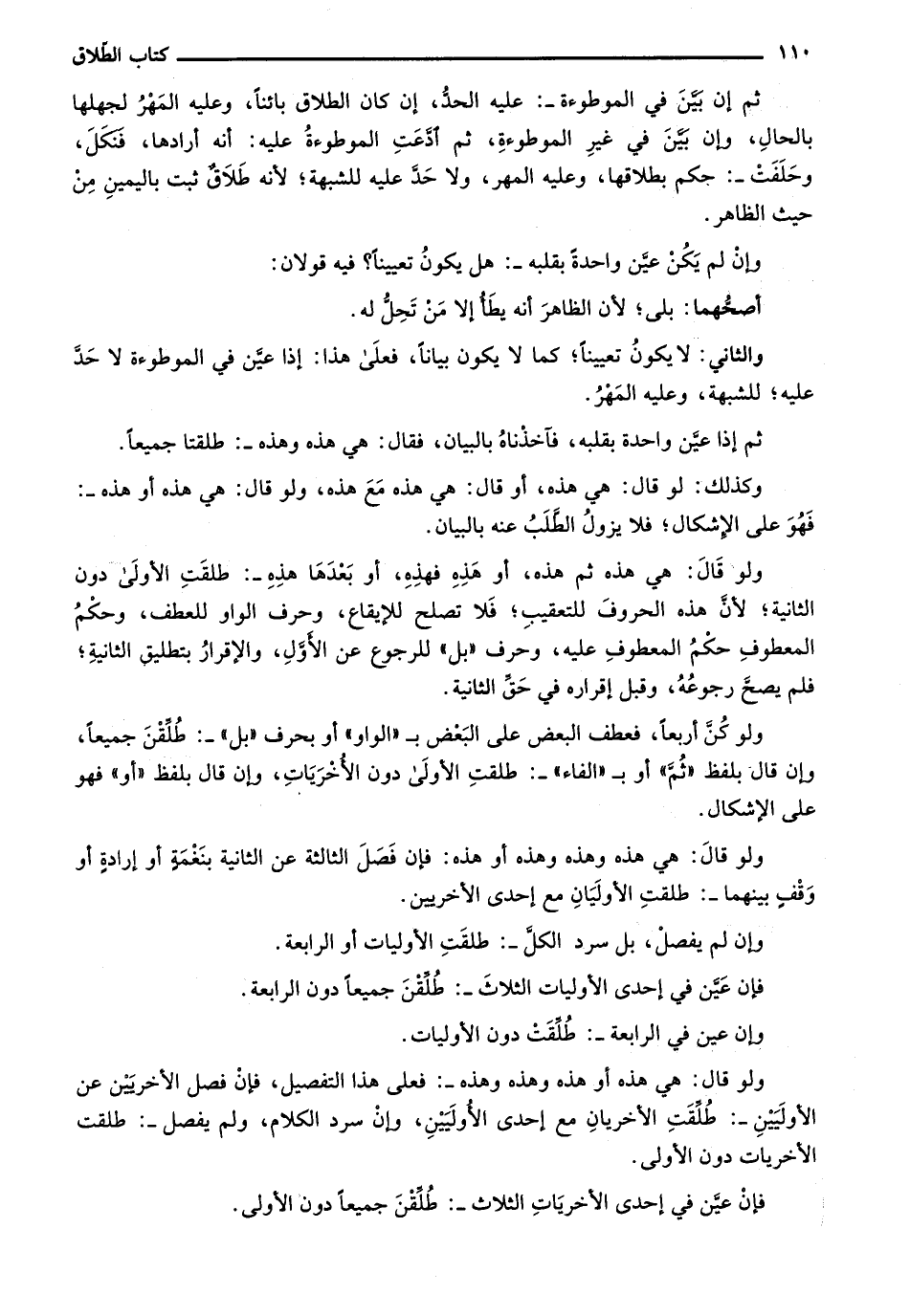 ولو قال: هي هذه ثم هذه، أو هذه فهذه، أو بعدها هذه-: طلقت الأولى دون الثانية؛ لأن هذه الحروف للتعقيب؛ فلا تصلح للإيقاع، وحرف الواو للعطف، وحكم المعطوف حكم المعطوف عليه، وحرف "بل" للرجوع عن الأول، والإقرار بتطليق الثانية، فلم يصح رجوعه، وقبل إقراره في حق الثانية.