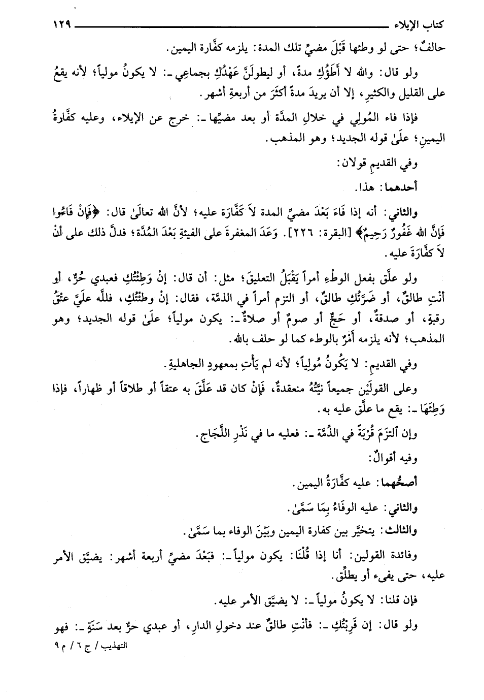 فإذا فاء المولي في خلال المدة أو بعد مضيها-: خرج عن الإيلاء، وعليه كفارة اليمين؛ على قوله الجديد؛ وهو المذهب.