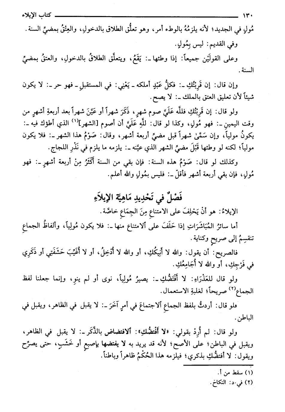 الإيلاء: هو أن يحلف على الامتناع من الجماع خاصة.