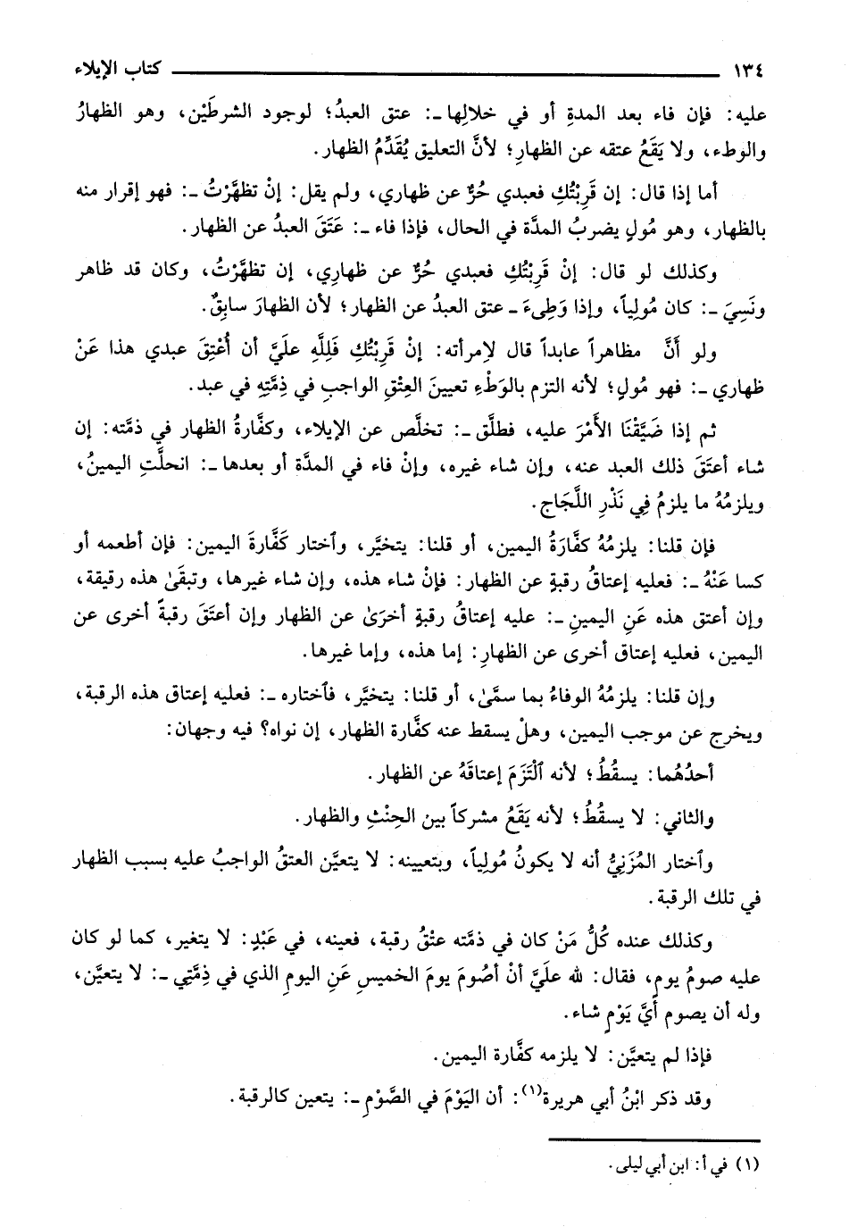 ولو أن مظاهراً عابداً قال لامرأته: إن قربتك فلله علي أن أعتق عبدي هذا عن ظهاري-: فهو مول؛ لأنه التزم بالوطء تعيين العتق الواجب في ذمته في عبد.