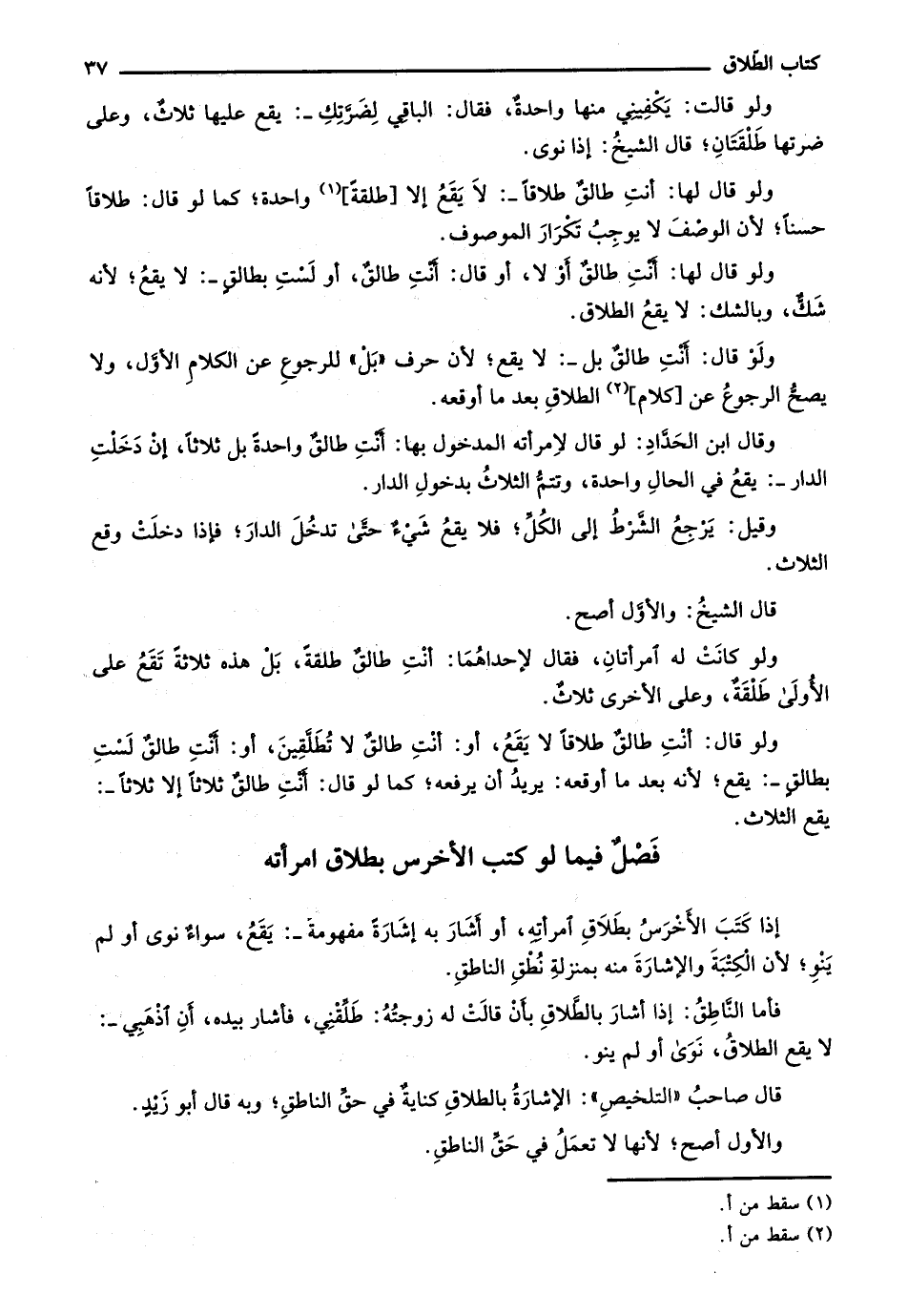 فصل فيما لو كتب الأخرس بطلاق امرأته