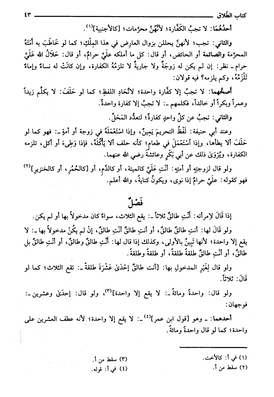 إذا قال لامرأته: أنت طالق ثلاثاً-: يقع الثلاث، سواء كان مدخولاً بها أو لم يكن.