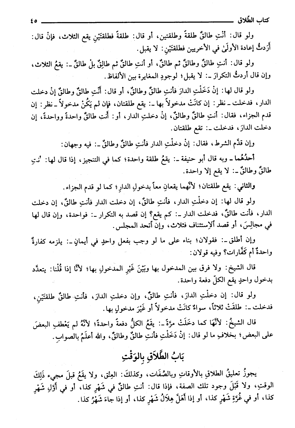 يجوز تعليق الطلاق بالأوقات وبالصفات، وكذلك: العتق، ولا يقع قبل مجيء ذلك الوقت، ولا قبل وجود تلك الصفة، فإذا قال: أنت طالق في شهر كذا، أو في أول شهر كذا، أو في غرة شهر كذا، أو إذا أهل هلال شهر كذا، أو إذا جاء شهر كذا.