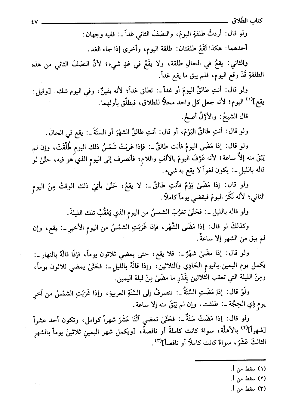 ولو قال: إذا مضت السنة-: تنصرف إلى السنة العربية، وإذا غربت الشمس من آخر يوم ذي الحجة-: طلقت، وإن لم يبق منه إلا ساعة.