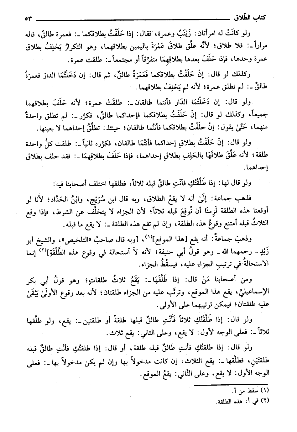 وكذلك لو قال: إن حلفت بطلاقكما فعمرة طالق، ثم قال: إن دخلتما الدار فعمرة طالق-: لم تطلق عمرة؛ لأنه لم يحلف بطلاقهما.