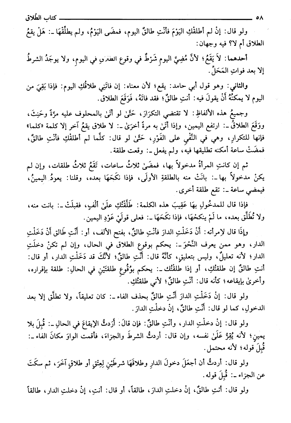وإذا قال لامرأته: أن دخلت الدار فأنت طالق، بفتح الألف، أو: أنت طالق أن دخلت الدار، وهو ممن يعرف النحو-: يحكم بوقوع الطلاق في الحال، وإن لم تكن دخلت الدار؛ لأنه تعليل، وليس بتعليق، كأنه قال: أنت طالق؛ لأنك قد دخلت الدار، أو قال: أنت طالق إن طلقتك، أو إذا طلقتك-: يحكم بوقوع طلقتين في الحال: طلقة بإقراره، وأخرى بإيقاعه؛ كأنه قال: أنت طالق؛ لأني طلقتك.