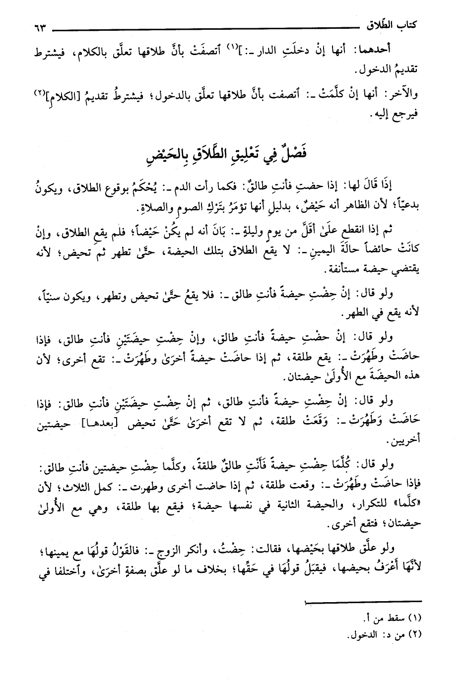 فصل في تعليق الطلاق بالحيض