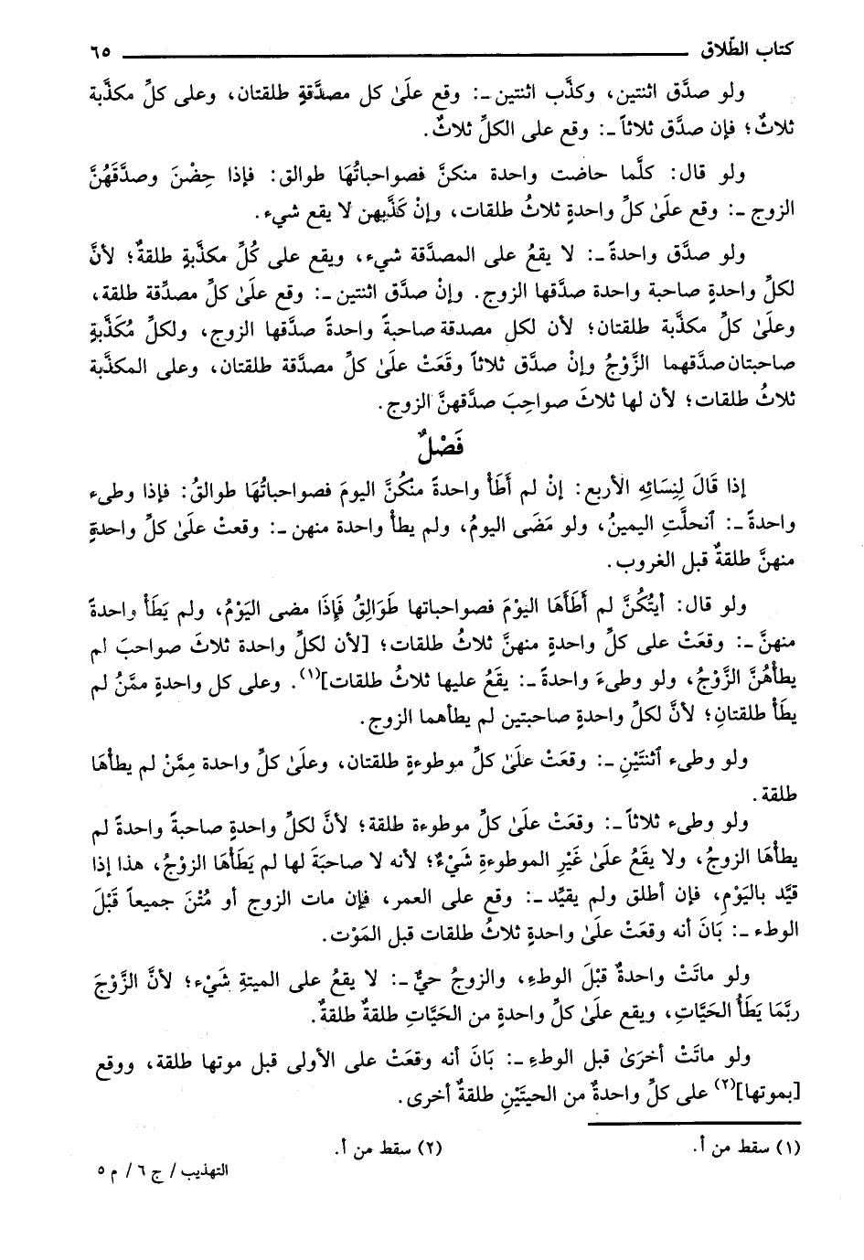 ولو صدق واحدة-: لا يقع على المصدقة شيء، ويقع على كل مكذبة طلقة؛ لأن لكل واحدة صاحبة واحدة صدقها الزوج. وإن صدق اثنتين-: وقع على كل مصدقة طلقة، وعلى كل مكذبة طلقتان؛ لأن لكل مصدقة صاحبة واحدة صدقها الزوج، ولكل مكذبة صاحبتان صدقهما الزوج وإن صدق ثلاثاً وقعت على كل مصدقة طلقتان، وعلى الكذبة ثلاث طلقات؛ لأن لها ثلاث صواحب صدقهن الزوج.