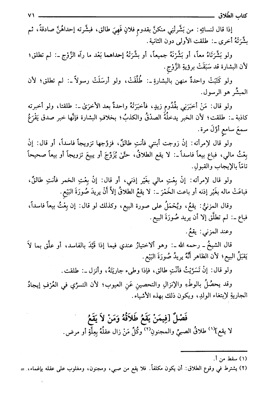 فَصْلُ [فِيمَنْ يَقَعُ طَلاَقُهُ وَمَنْ لاَ يَقَعُ