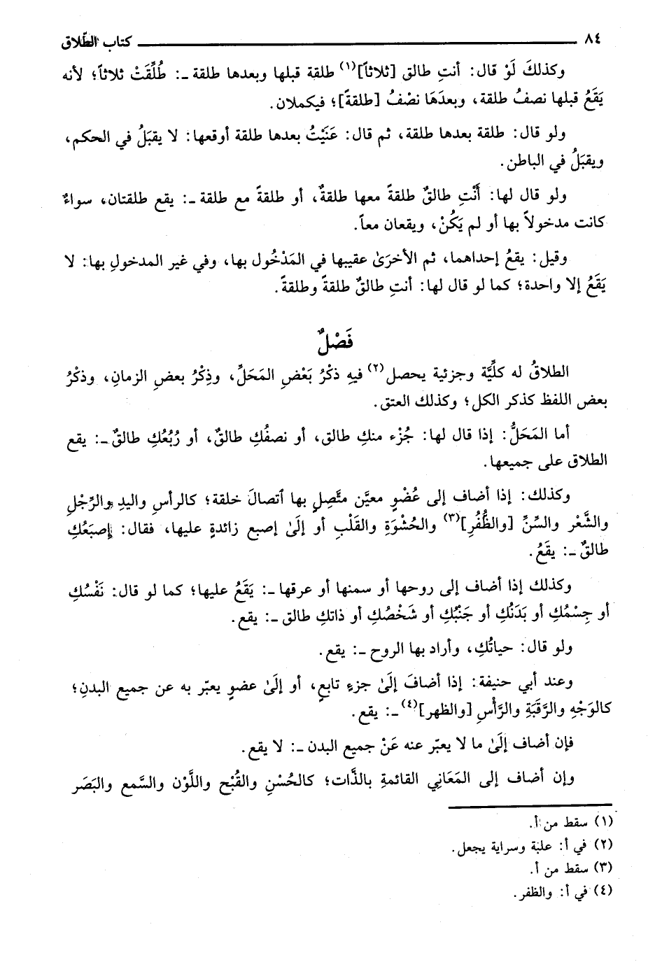 الطلاق له كلية وجزئية يحصل فيه ذكر بعض المحل، وذكر بعض الزمان، وذكر بعض اللفظ كذكر الكل؛ وكذلك العتق.