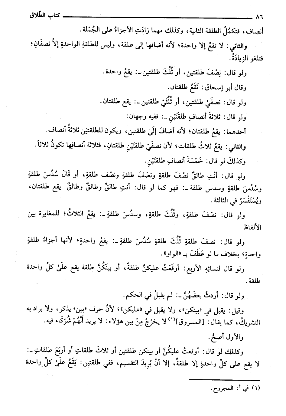 أنصاف، فتكمل الطلقة الثانية، وكذل مهما زادت الأجزاء على الجملة.