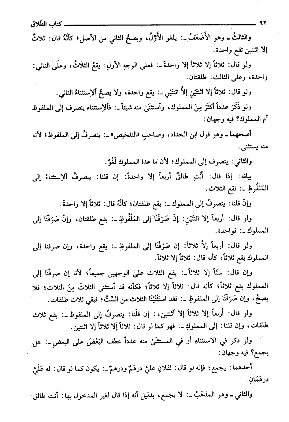 والثالث- وهو الأضعف-: يلغو الأول، ويصح الثاني من الأصل؛ كأنه قال: ثلاث إلا اثنتين تقع واحدة.