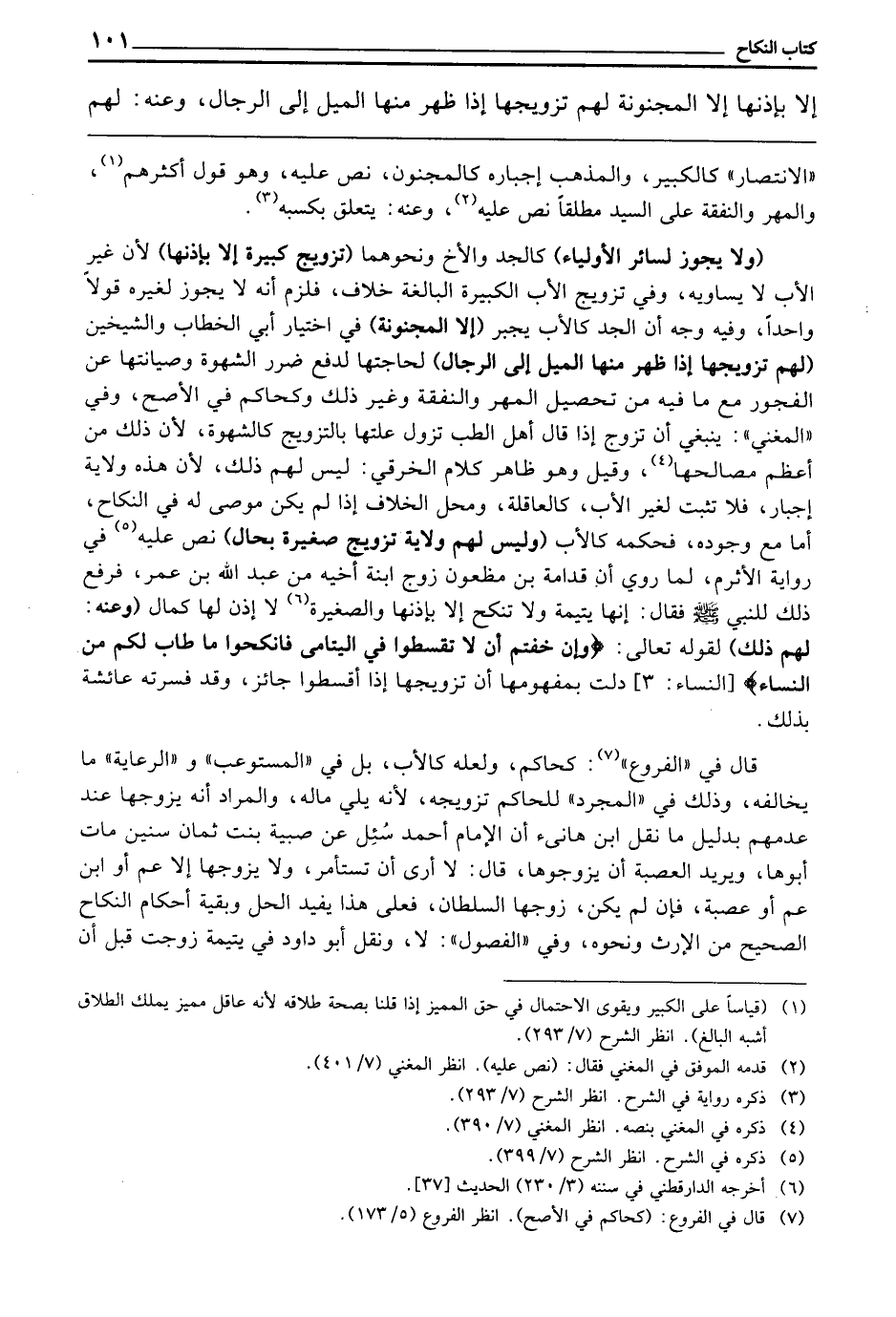إِلَّا بِإِذْنِهَا، إِلَّا الْمَجْنُونَةَ لَهُمْ تَزْوِيجُهَا إِذَا ظَهَرَ مِنْهَا الْمَيْلُ إِلَى الرِّجَالِ، وَعَنْهُ: لَهُمْ