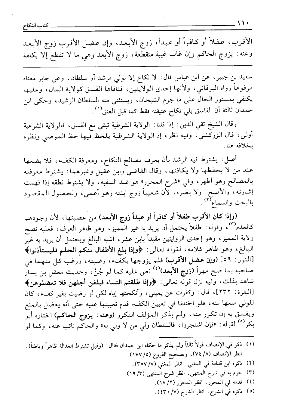 الْأَقْرَبُ طِفْلًا أَوْ كَافِرًا أَوْ عَبْدًا زَوَّجَ الْأَبْعَدُ، وَإِنْ عَضَلَ الْأَقْرَبُ زَوَّجَ الْأَبْعَدُ، وَعَنْهُ: يُزَوِّجُ الْحَاكِمُ، وَإِنْ غَابَ غَيْبَةً مُنْقَطِعَةً، زَوَّجَ الْأَبْعَدُ، وَهِيَ مَا لَا تُقْطَعُ إِلَّا بِكُلْفَةٍ