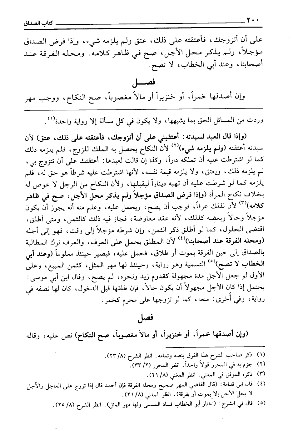 [إِنْ أَصْدَقَهَا خَمْرًا أَوْ خِنْزِيرًا أَوْ مَالًا مَغْصُوبًا]