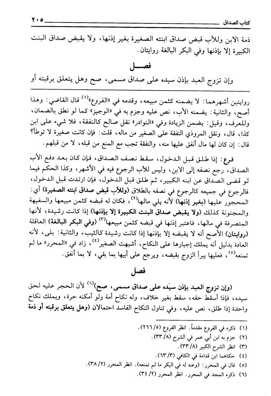 فَصْلٌ وَإِنْ تَزَوَّجَ الْعَبْدُ بِإِذْنِ سَيِّدِهِ عَلَى صَدَاقٍ مُسَمًّى، صَحَّ وَهَلْ يَتَعَلَّقُ بِرَقَبَتِهِ أَوْ