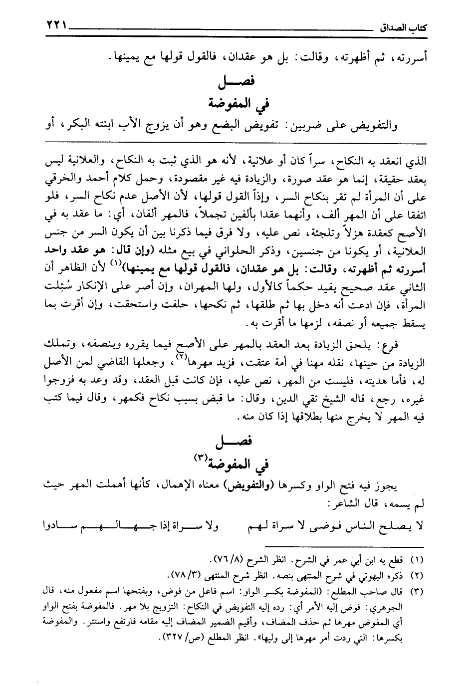 ِ يَجُوزُ فِيهِ فَتْحُ الْوَاوِ وَكَسْرُهَا (وَالتَّفْوِيضُ) مَعْنَاهُ: الْإِهْمَالُ، كَأَنَّهَا أَهْمَلَتِ الْمَهْرَ حَيْثُ لَمْ يُسَمِّهِ، قَالَ الشَّاعِرُ: