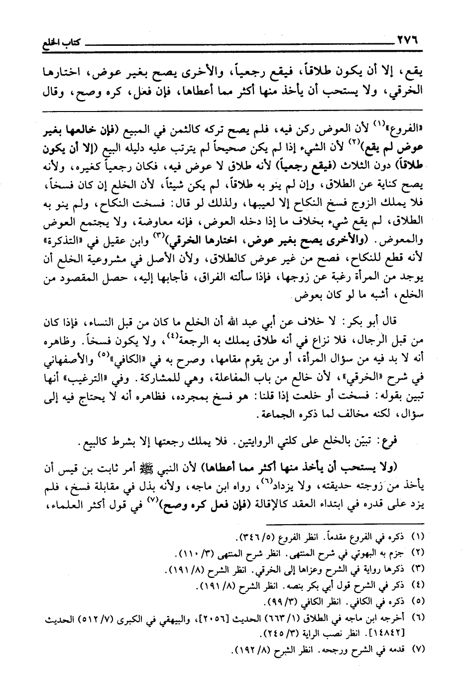 يَقَعْ، إِلَّا أَنْ يَكُونَ طَلَاقًا، فَيَقَعُ رَجْعِيًّا، وَالْأُخْرَى: يَصِحُّ بِغَيْرِ عِوَضٍ، اخْتَارَهَا الْخِرَقِيُّ، وَلَا يُسْتَحَبُّ أَنْ يَأْخُذَ مِنْهَا أَكْثَرَ مِمَّا أَعْطَاهَا، فَإِنْ فَعَلَ، كُرِهَ، وَصَحَّ، وَقَالَ
