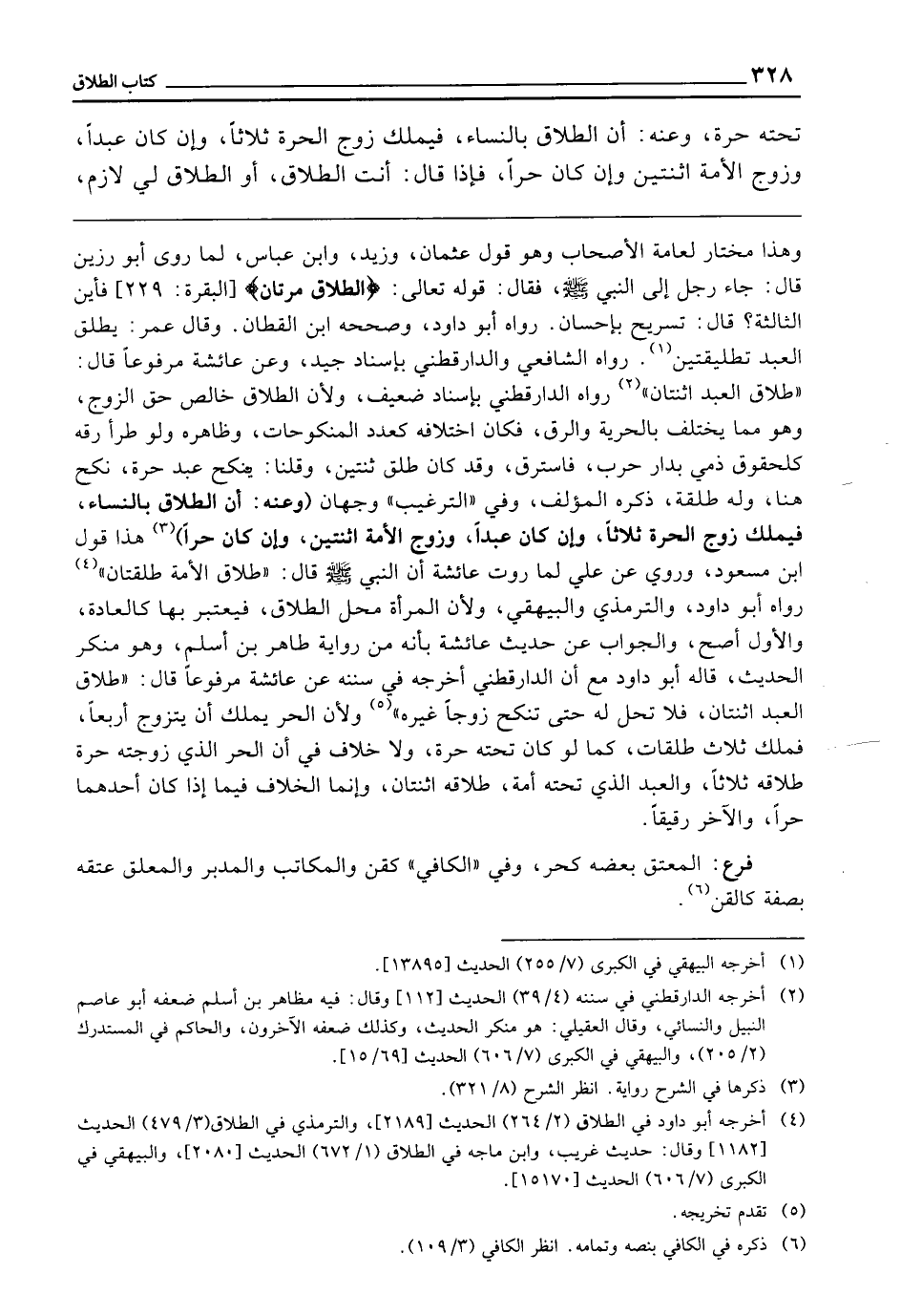 ـــــــــــــــــــــــــــــQوَهَذَا مُخْتَارٌ لِعَامَّةِ الْأَصْحَابِ، وَهُوَ قَوْلُ عُثْمَانَ، وَزَيْدٍ، وَابْنِ عَبَّاسٍ، لِمَا رَوَى أَبُو رَزِينٍ قَالَ: «جَاءَ رَجُلٌ إِلَى النَّبِيِّ - صَلَّى اللَّهُ عَلَيْهِ وَسَلَّمَ - فَقَالَ: قَوْله تَعَالَى: {الطَّلاقُ مَرَّتَانِ} [البقرة: 229] فَأَيْنَ الثَّالِثَةُ؛ قَالَ: تَسْرِيحٌ بِإِحْسَانٍ» رَوَاهُ أَبُو دَاوُدَ، وَصَحَّحَهُ ابْنُ الْقَطَّانِ، وَقَالَ عُمَرُ: يُطَلِّقُ الْعَبْدُ تَطْلِيقَتَيْنِ. رَوَاهُ الشَّافِعِيُّ وَالدَّارَقُطْنِيُّ بِإِسْنَادٍ جَيِّدٍ، وَعَنْ عَائِشَةَ مَرْفُوعًا، قَالَ: «طَلَاقُ الْعَبْدِ اثْنَتَانِ» رَوَاهُ الدَّارَقُطْنِيُّ بِإِسْنَادٍ ضَعِيفٍ؛ وَلِأَنَّ الطَّلَاقَ خَالِصُ حَقِّ الزَّوْجِ، وَهُوَ مِمَّا يَخْتَلِفُ بِالْحُرِّيَّةِ وَالرِّقِّ، فَكَانَ اخْتِلَافُهُ كَعَدَدِ الْمَنْكُوحَاتِ، وَظَاهِرُهُ: وَلَوْ طَرَأَ رِقُّهُ كَلُحُوقِ ذِمِّيٍّ بِدَارِ حَرْبٍ فَاسْتُرِقَّ وَقَدْ كَانَ طَلَّقَ ثِنْتَيْنِ، وَقُلْنَا: يَنْكِحُ عَبْدٌ حُرَّةً، نَكَحَ هُنَا، وَلَهُ طَلْقَةٌ، ذَكَرَهُ الْمُؤَلَّفُ، وَفِي " التَّرْغِيبِ " وَجْهَانِ (وَعَنْهُ: أَنَّ الطَّلَاقَ بِالنِّسَاءِ، فَيَمْلِكُ زَوْجَ الْحُرَّةِ ثَلَاثًا وَإِنْ كَانَ عَبْدًا، وَزَوْجُ الْأَمَةِ اثْنَتَيْنِ وَإِنْ كَانَ حُرًّا) هَذَا قَوْلُ ابْنِ مَسْعُودٍ، وَرُوِيَ عَنْ عَلِيٍّ لَمَّا رَوَتْ عَائِشَةُ أَنَّ النَّبِيَّ - صَلَّى اللَّهُ عَلَيْهِ وَسَلَّمَ - قَالَ: «طَلَاقُ الْأَمَةِ طَلْقَتَانِ» رَوَاهُ أَبُو دَاوُدَ، وَالتِّرْمِذِيُّ، وَالْبَيْهَقِيُّ؛ وَلِأَنَّ الْمَرْأَةَ مَحَلُّ الطَّلَاقِ، فَيُعْتَبَرُ بِهَا كَالْعَادَةِ، وَالْأَوَّلُ أَصَحُّ، وَالْجَوَابُ: عَنْ حَدِيثِ عَائِشَةَ بِأَنَّهُ مِنْ رِوَايَةِ طَاهِرِ بْنِ أَسْلَمَ، وَهُوَ مُنْكَرُ الْحَدِيثِ - قَالَهُ أَبُو دَاوُدَ، مَعَ أَنَّ الدَّارَقُطْنِيَّ أَخْرَجَهُ فِي سُنَنِهِ عَنْ عَائِشَةَ مَرْفُوعًا، قَالَ: «طَلَاقُ الْعَبْدِ اثْنَتَانِ، فَلَا تَحِلُّ لَهُ حَتَّى تَنْكِحَ زَوْجًا غَيْرَهُ» ؛ وَلِأَنَّ الْحُرَّ يَمْلِكُ أَنْ يَتَزَوَّجَ أَرْبَعًا، فَمَلَكَ ثَلَاثَ طَلْقَاتٍ كَمَا لَوْ كَانَ تَحْتَهُ حُرَّةٌ، وَلَا خِلَافَ فِي أَنَّ الْحُرَّ الَّذِي زَوْجَتُهُ حُرَّةٌ طَلَاقُهُ ثَلَاثًا، وَالْعَبْدُ الَّذِي تَحْتَهُ أَمَةٌ طَلَاقُهُ اثْنَتَانِ، وَإِنَّمَا الْخِلَافُ فِيمَا إِذَا كَانَ أَحَدُهُمَا حُرًّا وَالْآخَرُ رَقِيقًا.