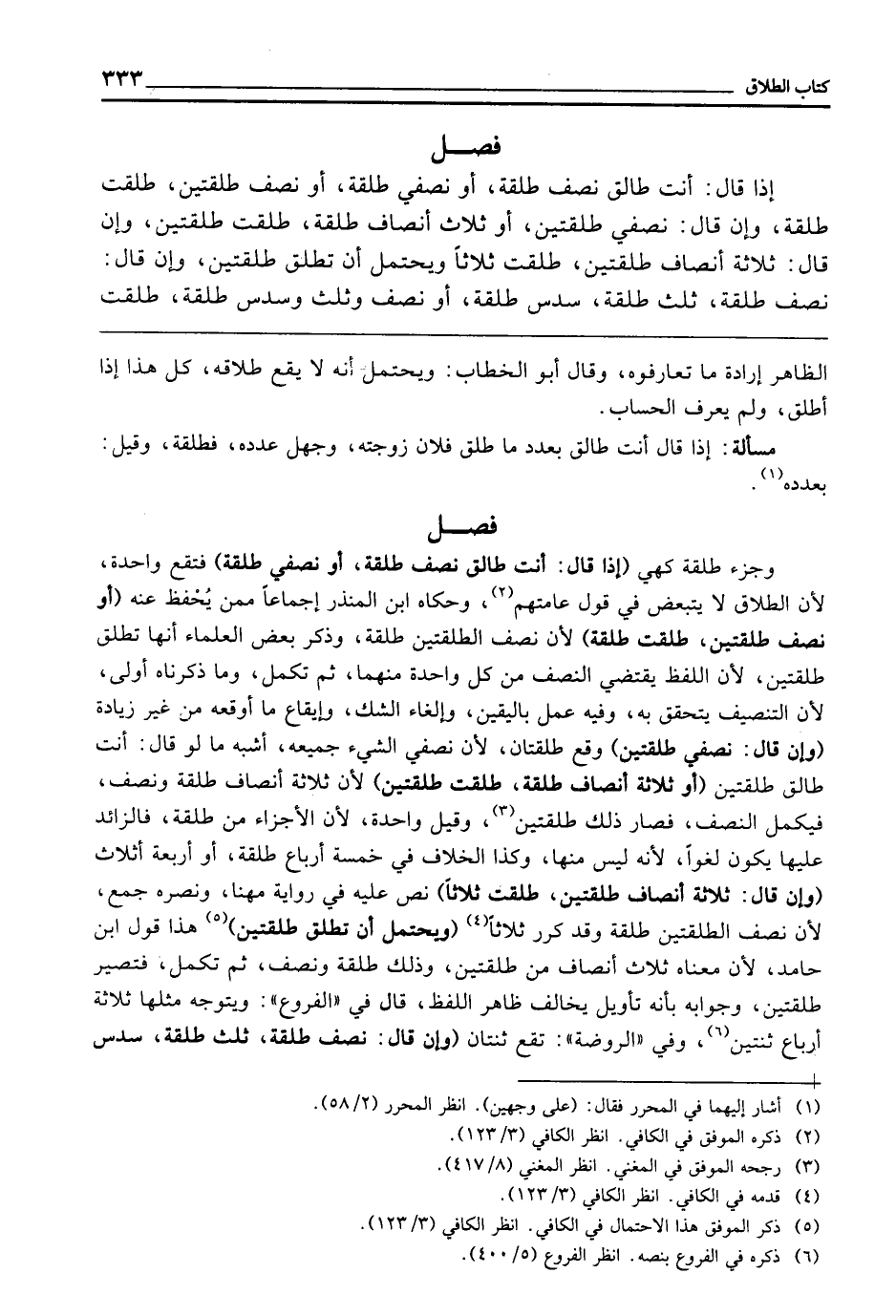 فَصْلٌ وجُزْء طَلْقَة كَهِيَ (إِذَا قَالَ: أَنْتِ طَالِقٌ نِصْفَ طَلْقَةٍ، أَوْ نِصْفَيْ طَلْقَةٍ) فَتَقَعُ وَاحِدَةً؛ لِأَنَّ الطَّلَاقَ لَا يَتَبَعَّضُ فِي قَوْلِ عَامَّتِهِمْ، وَحَكَاهُ ابْنُ الْمُنْذِرِ إِجْمَاعا ممَّنْ يُحْفَظُ عَنْهُ (أَوْ نِصْفَ طَلْقَتَيْنِ، طُلِّقَتْ طَلْقَةً) ؛ لِأَنَّ نِصْفَ الطَّلْقَتَيْنِ طَلْقَةٌ، وَذَكَرَ بَعْضُ الْعُلَمَاءِ أَنَّهَا تُطَلَّقُ طَلْقَتَيْنِ؛ لِأَنَّ اللَّفْظَ يَقْتَضِي النِّصْفَ مِنْ كُلِّ وَاحِدَةٍ مِنْهُمَا، ثُمَّ تُكْمَلُ، وَمَا ذَكَرْنَاهُ أَوْلَى؛ لِأَنَّ التَّنْصِيفَ يَتَحَقَّقُ بِهِ، وَفِيهِ عَمَلٌ بِالْيَقِينِ وَإِلْغَاءُ الشَّكِّ، وَإِيقَاعُ مَا أَوْقَعَهُ مِنْ غَيْرِ زِيَادَةٍ (وَإِنْ قَالَ: نِصْفَيْ طَلْقَتَيْنِ) وَقَعَ طَلْقَتَانِ؛ لِأَنَّ نِصْفَيِ الشَّيْءِ جَمِيعُهُ، أَشْبَهَ مَا لَوْ قَالَ: أَنْتِ طَالِقٌ طَلْقَتَيْنِ (أَوْ ثَلَاثَةَ أَنْصَافِ طَلْقَةٍ، طُلِّقَتْ طَلْقَتَيْنِ) ؛ لِأَنَّ ثَلَاثَةَ أَنْصَافٍ طَلْقَةٌ وَنِصْفٌ، فَيُكَمَّلُ النِّصْفُ، فَصَارَ ذَلِكَ طَلْقَتَيْنِ، وَقِيلَ: وَاحِدَةٌ؛ لِأَنَّ الْأَجْزَاءَ مِنْ طَلْقَةٍ، فَالزَّائِدُ عَلَيْهَا يَكُونُ لَغْوًا؛ لِأَنَّهُ لَيْسَ مِنْهَا، وَكَذَا الْخِلَافُ فِي خَمْسَةِ أَرْبَاعِ طَلْقَةٍ، أَوْ أَرْبَعَةِ أَثْلَاثٍ (وَإِنْ قَالَ: ثَلَاثَةَ أَنْصَافِ طَلْقَتَيْنِ، طُلِّقَتْ ثَلَاثًا) نَصَّ عَلَيْهِ فِي رِوَايَةِ مُهَنَّا، وَنَصَرَهُ جَمْعٌ؛ لِأَنَّ نِصْفَ الطَّلْقَتَيْنِ طَلْقَةٌ، وَقَدْ كُرِّرَ ثَلَاثًا (وَيُحْتَمَلُ أَنْ تُطَلَّقَ طَلْقَتَيْنِ) هَذَا قَوْلُ ابْنِ حَامِدٍ؛ لِأَنَّ مَعْنَاهُ: ثَلَاثة أَنْصَافٍ مِنْ طَلْقَتَيْنِ، وَذَلِكَ طَلْقَةٌ وَنِصْفٌ، ثُمَّ تُكْمَلُ فَتَصِيرُ طَلْقَتَيْنِ، وَجَوَابُهُ بِأَنَّهُ تَأْوِيلٌ يُخَالِفُ ظَاهِرَ اللَّفْظِ، قَالَ فِي " الْفُرُوعِ ": وَيَتَوَجَّهُ مِثْلُهَا ثَلَاثَةُ أَرْبَاعِ ثِنْتَيْنِ، وَفِي " الرَّوْضَةِ ": تَقَعُ ثِنْتَانِ (وَإِنْ قَالَ: نِصْفُ طَلْقَةٍ، ثُلُثُ طَلْقَةٍ سُدُسُ