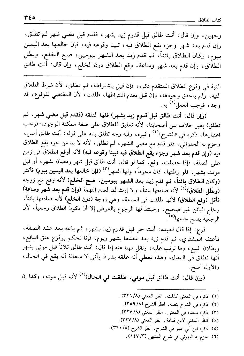 وَجْهَيْنِ، وَإِنْ قَالَ: أَنْتِ طَالِقٌ قَبْلَ قُدُومِ زَيْدٍ بِشَهْرٍ، فَقَدِمَ قَبْلَ مُضِيِّ شَهْرٍ لَمْ تُطَلَّقْ، وَإِنْ قَدِمَ بَعْدَ شَهْرٍ وَجُزْءٍ يَقَعُ الطَّلَاقُ فِيهِ، تَبَيَّنَّا وُقُوعَهُ فِيهِ، فَإِنْ خَالَعَهَا بَعْدَ الْيَمِينِ بِيَوْمٍ، وَكَانَ الطَّلَاقُ بَائِنًا، ثُمَّ قَدِمَ زَيْدٌ بَعْدَ الشَّهْرِ بِيَوْمَيْنِ، صَحَّ الْخُلْعُ، وَبَطَلَ الطَّلَاقُ، وَإِنْ قَدِمَ بَعْدَ شَهْرٍ وَسَاعَةٍ، وَقَعَ الطَّلَاقُ دُونَ الْخُلْعِ، وَإِنْ قَالَ: أَنْتِ طَالِقٌ