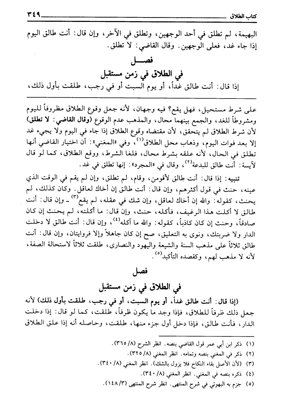 فِي الطَّلَاقِ فِي زَمَنٍ مُسْتَقْبَلٍ (إِذَا قَالَ: أَنْتِ طَالِقٌ غَدًا، أَوْ يَوْمَ السَّبْتَ، أَوْ فِي رَجَبٍ - طُلِّقَتْ بِأَوَّلِ ذَلِكَ) ؛ لِأَنَّهُ جَعَلَ ذَلِكَ ظَرْفًا لِلطَّلَاقِ، فَإِذَا وُجِدَ مَا يَكُونُ ظَرْفًا طُلِّقَتْ، كَمَا لَوْ قَالَ: إِذَا دَخَلْتِ الدَّارَ فَأَنْتِ طَالِقٌ، فَإِذَا دَخَلَ أَوَّلُ جُزْءٍ مِنْهَا طُلِّقَتْ، وَحَاصِلُهُ: أَنَّهُ إِذَا عَلَّقَ الطَّلَاقَ