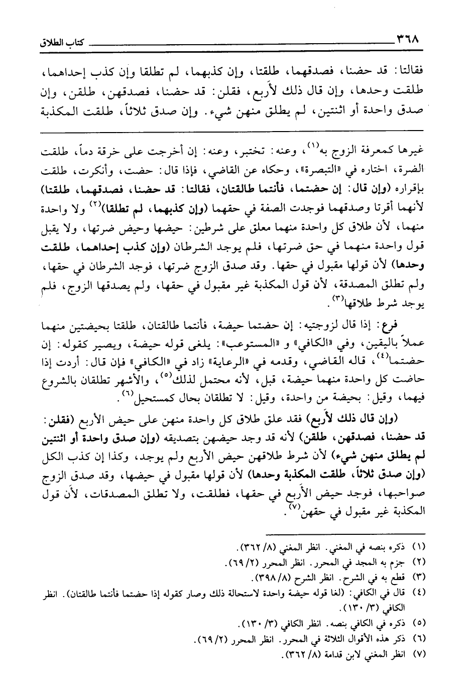 فَقَالَتَا: قَدْ حِضْنَا فَصَدَّقَهُمَا - طُلِّقَتَا، وَإِنْ كَذَّبَهُمَا لَمْ تُطَلَّقَا، وَإِنْ كَذَّبَ إِحْدَاهُمَا طُلِّقَتْ وَحْدَهَا، وَإِنْ قَالَ ذَلِكَ لِأَرْبَعٍ، فَقُلْنَ: قَدْ حِضْنَا، فَصَدَّقَهُنَّ، طُلِّقْنَ، وَإِنْ صَدَّقَ وَاحِدَةً أَوِ اثْنَتَيْنِ لَمْ يُطَلَّقْ مِنْهُنَّ شَيْءٌ، وَإِنْ صَدَّقَ ثَلَاثًا طُلِّقَتِ الْمُكَذَّبَةُ
