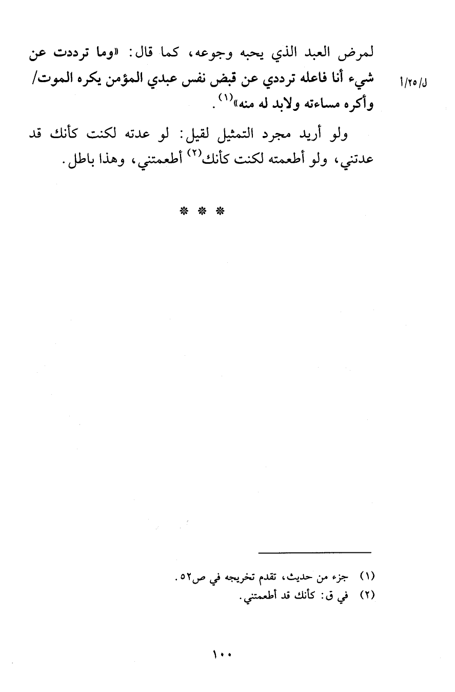 لمرض العبد الذي يحبه وجوعه كما قال وما ترددت عن شيء أنا فاعله ترددي عن قبض نفس عبدي المؤمن يكره الموت وأكره مساءته ولابد له منه ولو أريد مجرد التمثيل لقيل لو عدته لكنت كأنك قد عدتني ولو أطعمته لكنت كأنك أطعمتني وهذا باطل