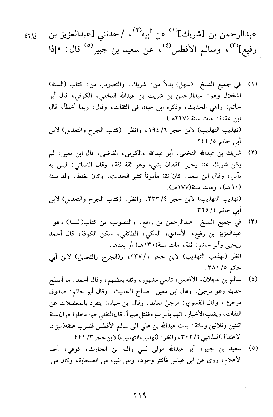 عبد الرحمن بن شريك عن أبيه حدثني عبد العزيز بن رفيع وسالم الأفطس عن سعيد بن جبير قال إذا