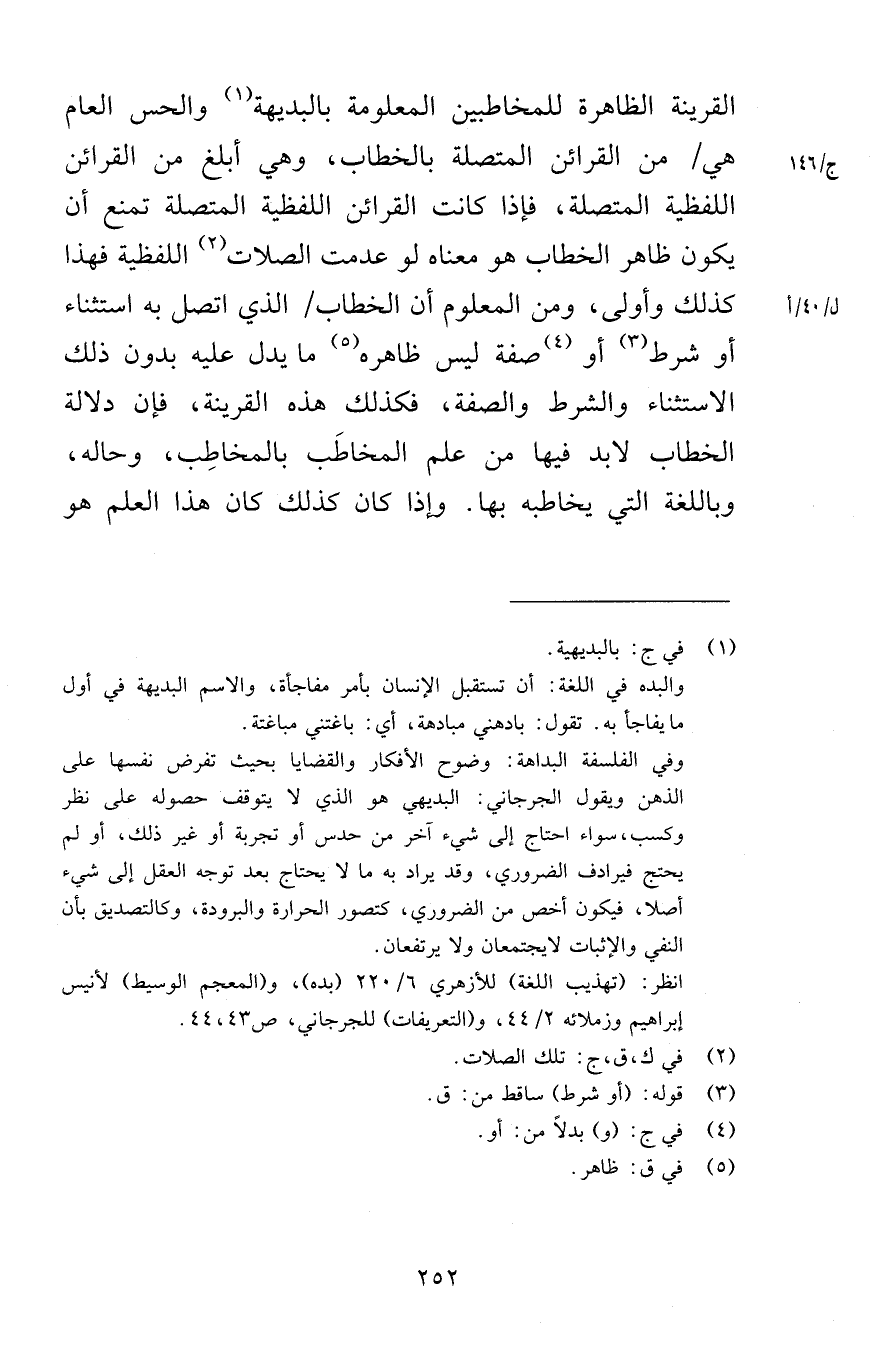 القرينة الظاهرة للمخاطبين المعلومة بالبديهة والحس العام هي من القرائن المتصلة بالخطاب وهي أبلغ من القرائن اللفظية المتصلة فإذا كانت القرائن اللفظية المتصلة تمنع أن يكون ظاهر الخطاب هم معناه لو عدمت الصلات اللفظية فهذا كذلك وأولى ومن المعلوم أن الخطاب الذي اتصل به استثناء أو شرط أو صفة ليس ظاهره ما يدل عليه بدون ذلك الاستثناء والشرط والصفة فكذلك هذه القرينة فإن دلالة الخطاب لابد فيها من علم المخاطَب بالمخاطِب وحاله وباللغة التي يخاطبه بها وإذا كان كذلك كان هذا العلم هو