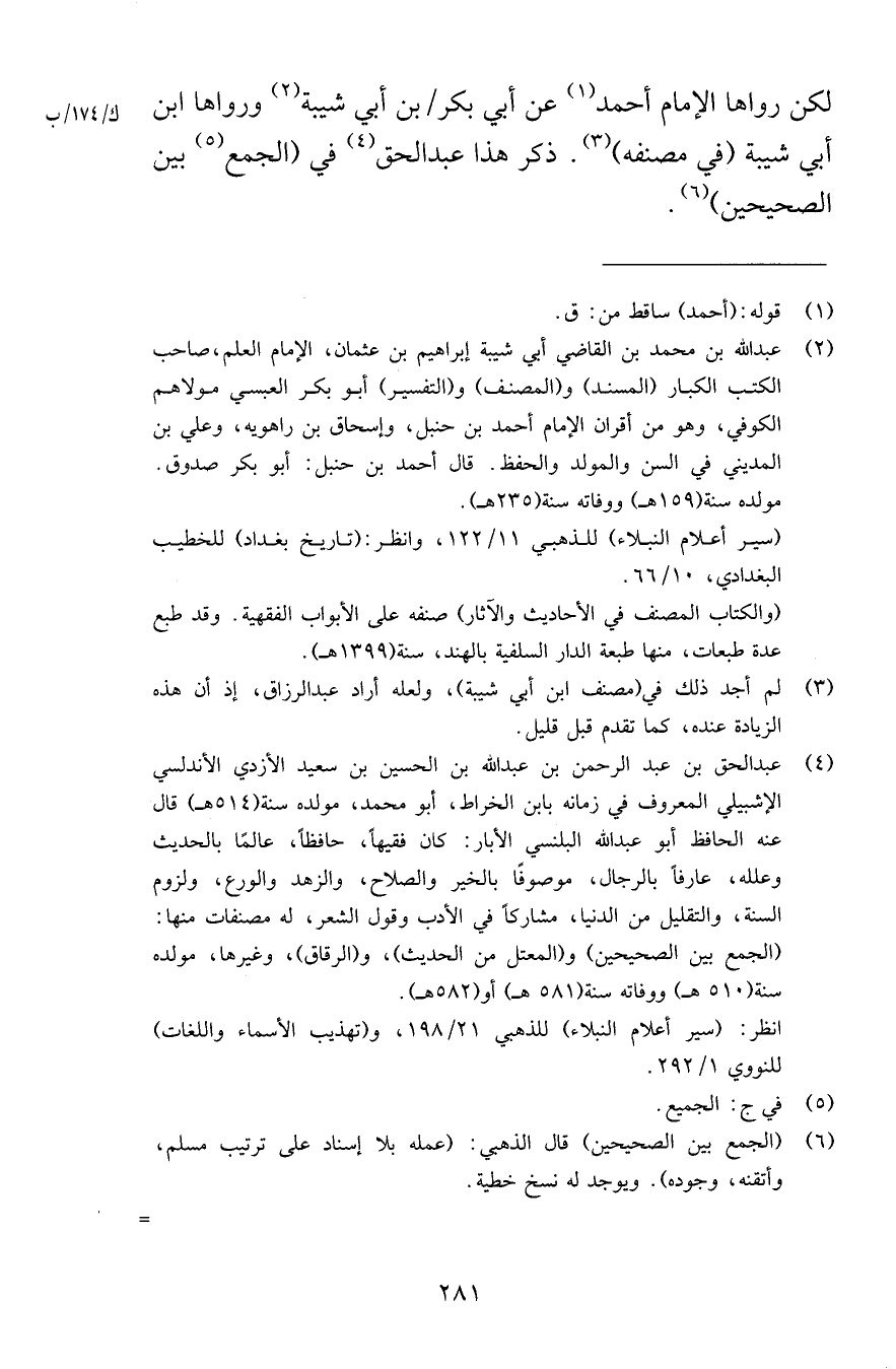 لكن رواها الإمام أحمد عن أبي بكر بن أبي شيبة ورواها ابن أبي شيبة في مصنفه ذكر هذا عبد الحق في الجمع بين الصحيحين