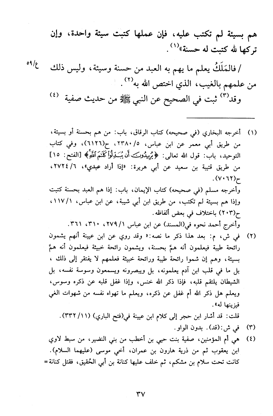 هم بسيئة لم تكتب عليه فإن عملها كتبت سيئة واحدة وإن تركها لله كتبت له حسنة فالمَلَكُ يعلم ما يهم به العبد من حسنة وسيئة وليس ذلك من علمهم بالغيب الذي اختص الله به وقد ثبت في الصحيح عن النبي صلى الله عليه وسلم من حديث صفية