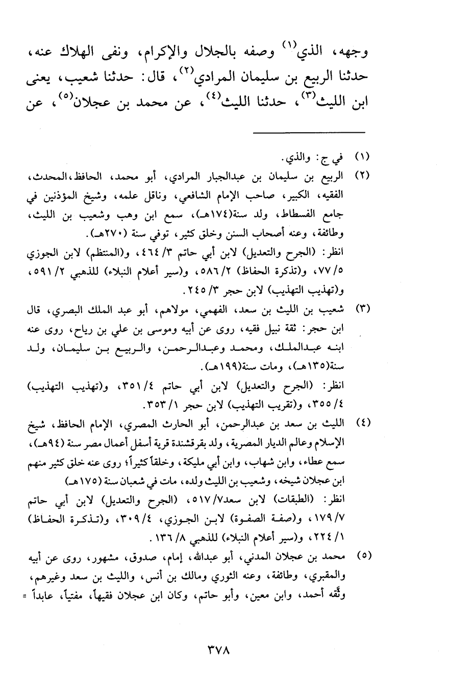 وجهه الذي وصفه بالجلال والإكرام ونفى الهلاك عنه حدثنا الربيع بن سليمان المرادي قال حدثنا شعيب يعني ابن الليث حدثنا الليث عن محمد بن عجلان عن